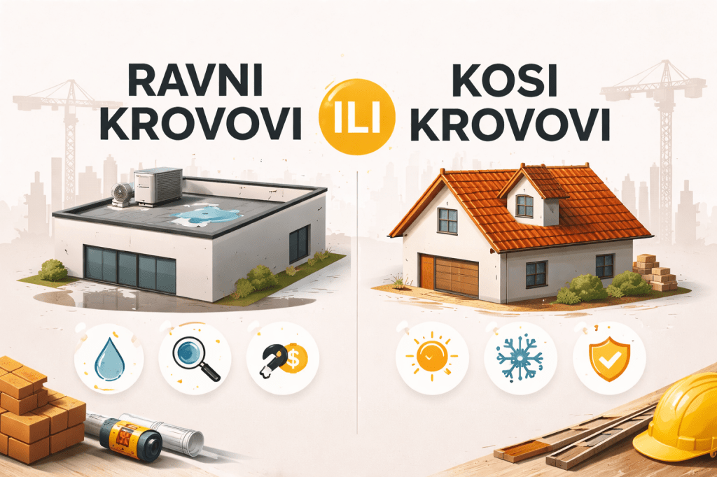 Ako tražite dugoročnu sigurnost i manje brige, kosi krov je često racionalniji izbor. Ako vam je prioritet savremeni izgled i dodatna funkcionalnost krova, ravni krov može biti pravo rešenje, ali samo uz vrhunsku izvedbu.